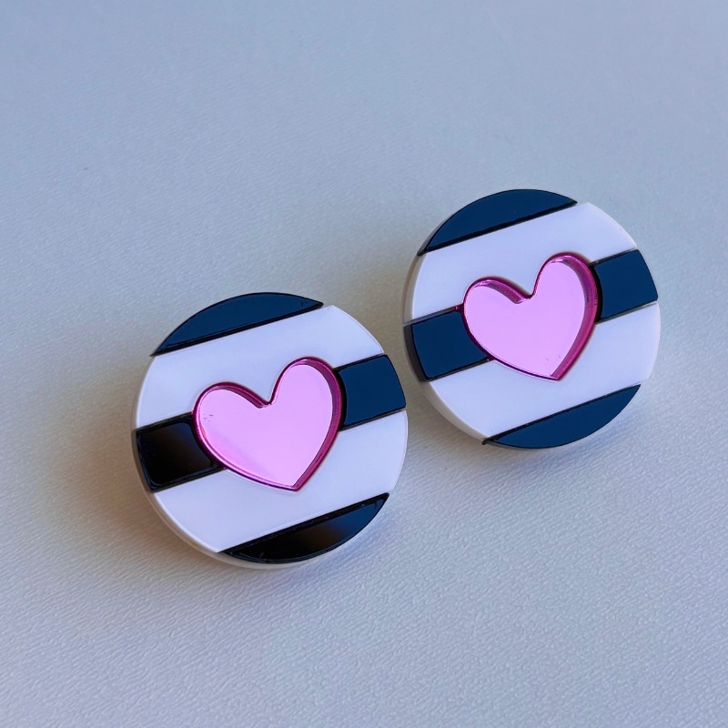 Material: Metacrilato espejo y mate. Perno de acero inoxidable e hipoalergénico.