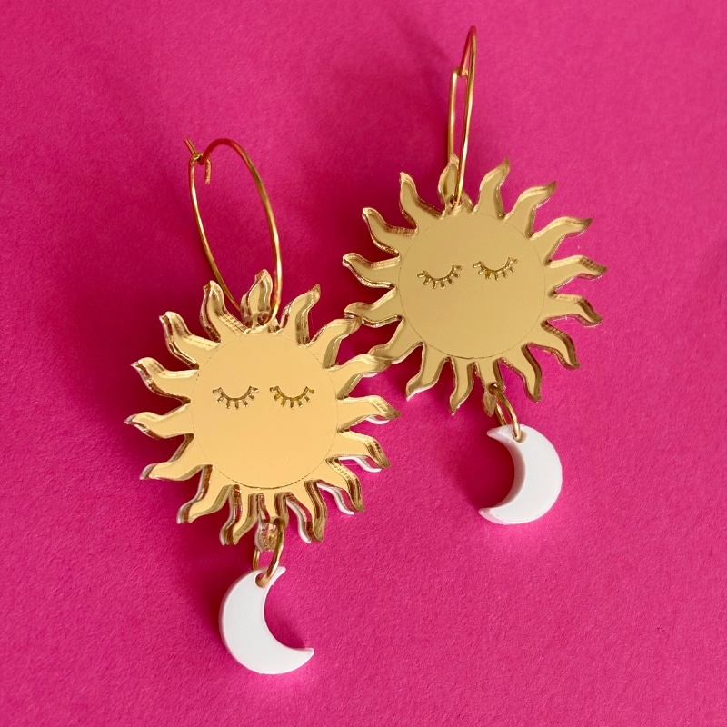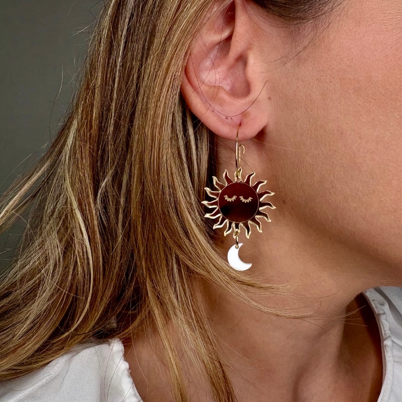 Material: Metacrilato opaco, nacarado y espejo. Aro de acero inoxidable e hipoalergénico.