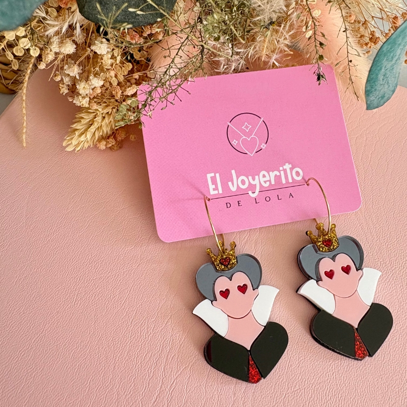 Material: Metacrilato opaco, glitter y espejo. Aro de acero inoxidable e hipoalergénico.