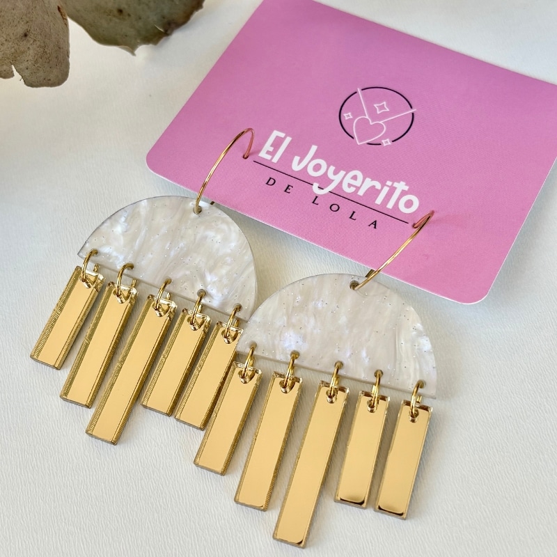 Material: Metacrilato espejo y nacarado. Aro de acero inoxidable e hipoalergénico.